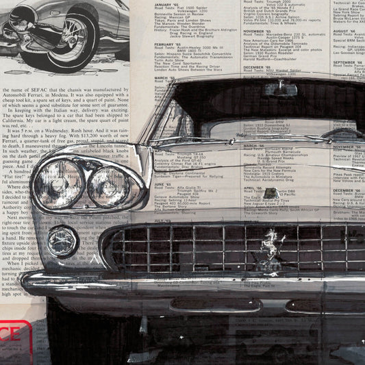 Having grown up in Michigan in a three-bedroom house with a five-car garage, it’s only natural that Adam’s eye gravitates towards the auto industry for inspiration – for both the subjects and the classified ads that served as the original canvases. With true classified ads becoming scarce, as much thought is now put into composing the newsprint canvas as the artwork itself. Each canvas is uniquely curated towards the adventure-based subjects leaving much to be discovered beyond the details of the drawing. Based in Golden, Colorado,