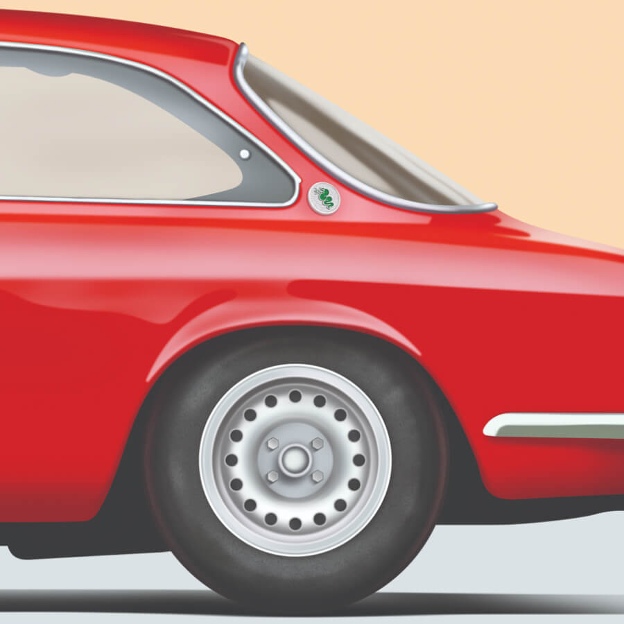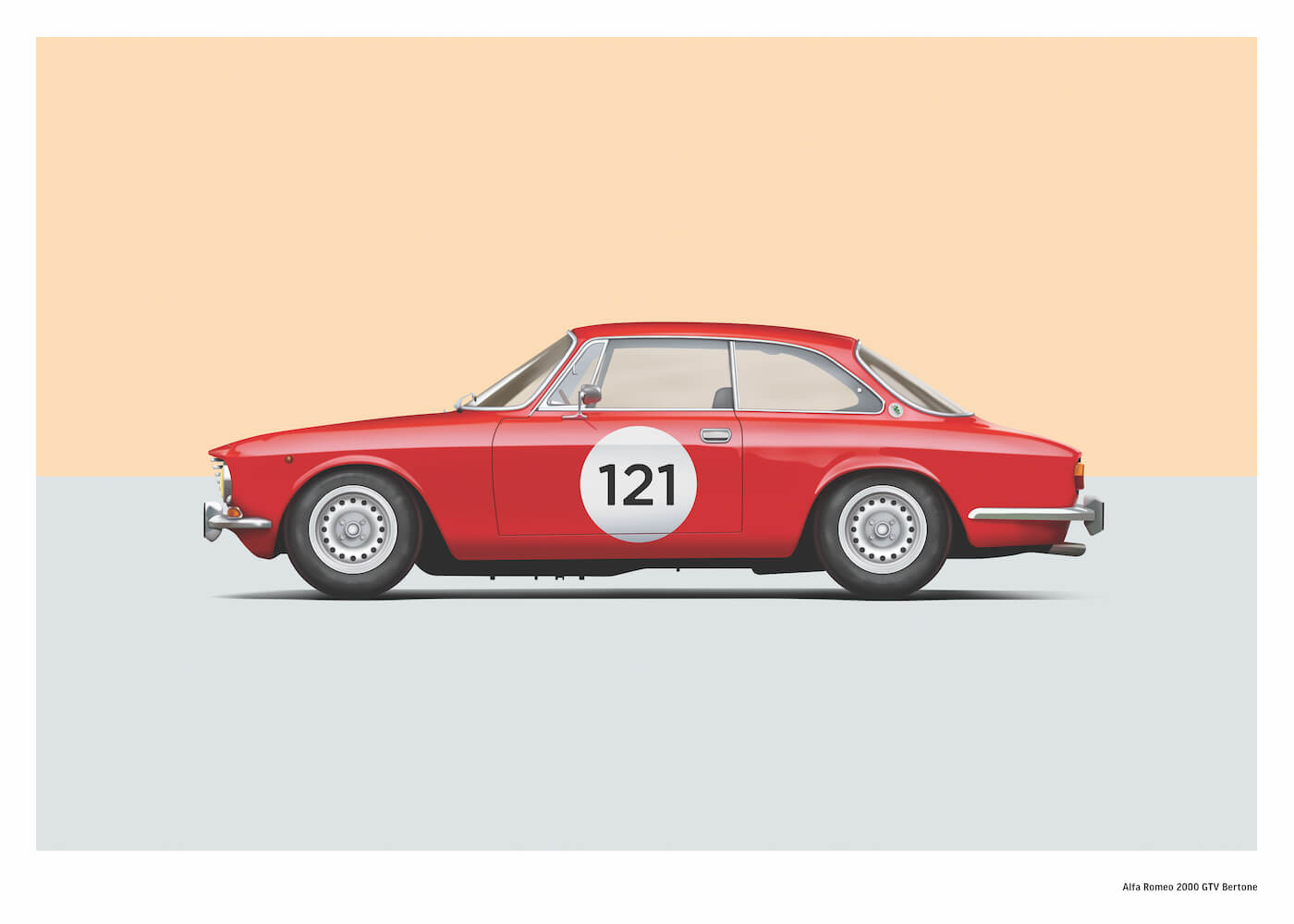 This Alfa Romeo 2000 GTV art print is the epitome of La Dolce Vita