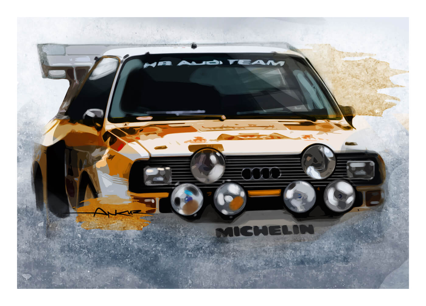 In the world of rallying, the iconic white-yellow HB livery of the Audi Quattro was synonymous with victory. This remarkable car reshaped the future of rally sports, pioneering the effective use of all-wheel drive. Its predecessor, the Urquattro, showed promise as a racer but faced numerous challenges, paving the way for a new edition. The Audi Sport Quattro emerged with a shorter wheelbase, resulting in its distinctive and unconventional profile. Ankur Singh pays homage to this groundbreaking vehicle in his captivating Audi Sport Quattro Group B art print.
