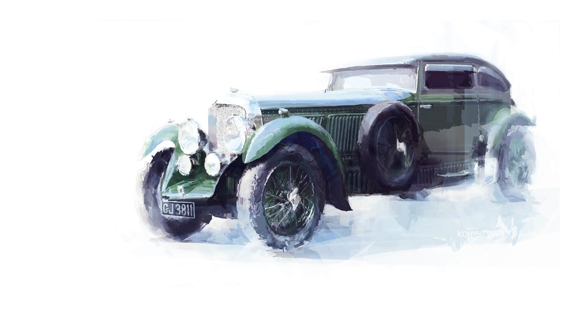 This Fine Car Art is dedicated to the most successful race-cars built by Bentley. The Bentley Speed 6 Coupe by Gurney Nutting is the car, which inspired the modern day design of the Bentley Continental GT. The artwork, made by the talented illustrator Artem Halko, is portraying the famous vehicle, driven by the ultimate Bentley Boy - Woolf Bernato.
