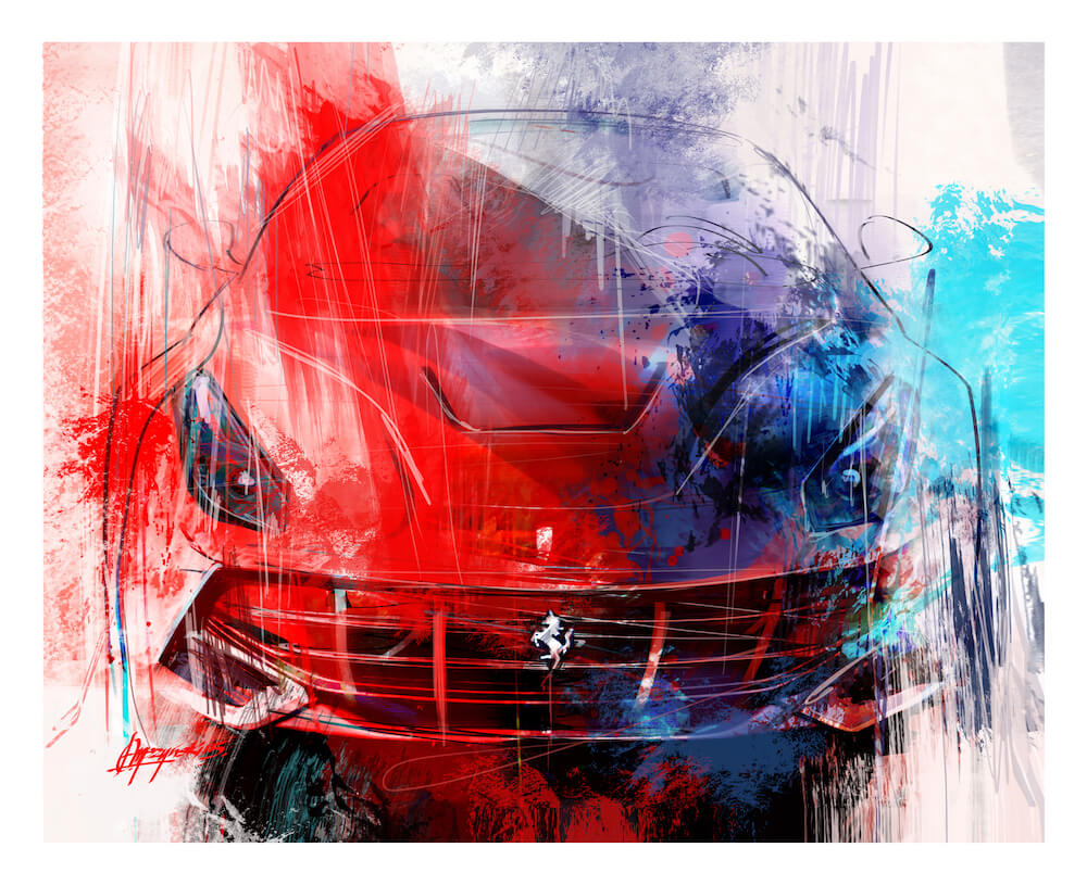 As you pass by this captivating Ferrari F12 Berlinetta poster art print, what narrative unfolds in your imagination? Is it the tale of a wealthy gentleman relishing the V12 power through the epic curves of Stelvio? Or perhaps, a fleeting glance in the rearview mirror as the menacing red beast approaches? Your creativity weaves a personal Berlinetta fairytale with this pure GT car, boasting a naturally aspirated V12 engine delivering 740 hp. With its Pininfarina design and luxurious interior, the F12 becomes more than a car – it becomes a story maker.