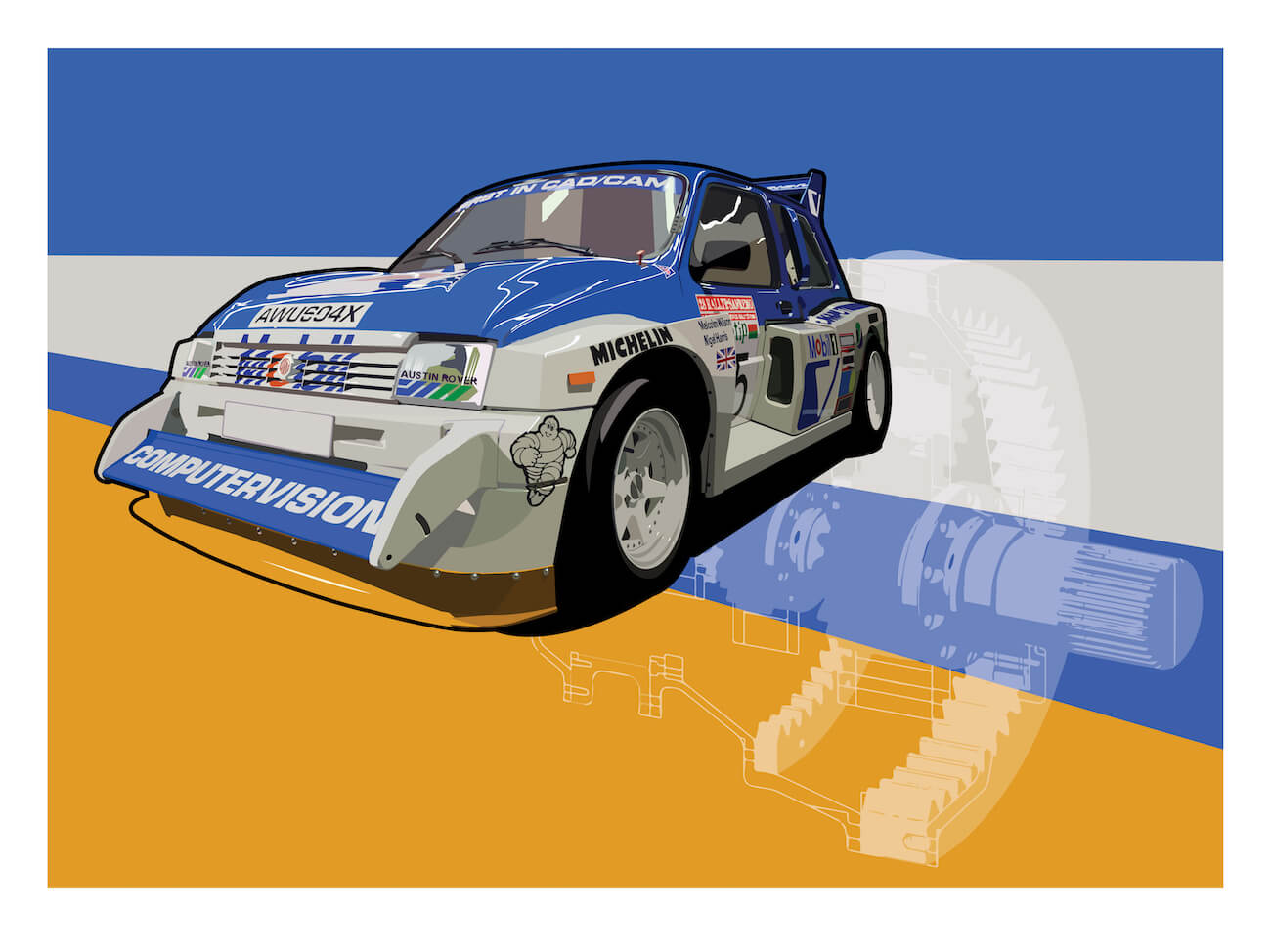 In a typically wet day in February 1984, a few people were gathered together in front of London's Excelsior Hotel. Almost all of them were automotive journalists invited to watch a film of a prototype undergoing testing. As the film reached its climax, a real car burst through the movie screen. It was an MG Metro 6R4 with Tony Pond behind the wheel. This was the debut of the Austin Rover Group B program. An effort which was cursed with plenty of bad luck but though kind of successful. This is an amazing car with an interesting story behind it. That is why we are more than happy to share this MG Metro 6R4 art with you.