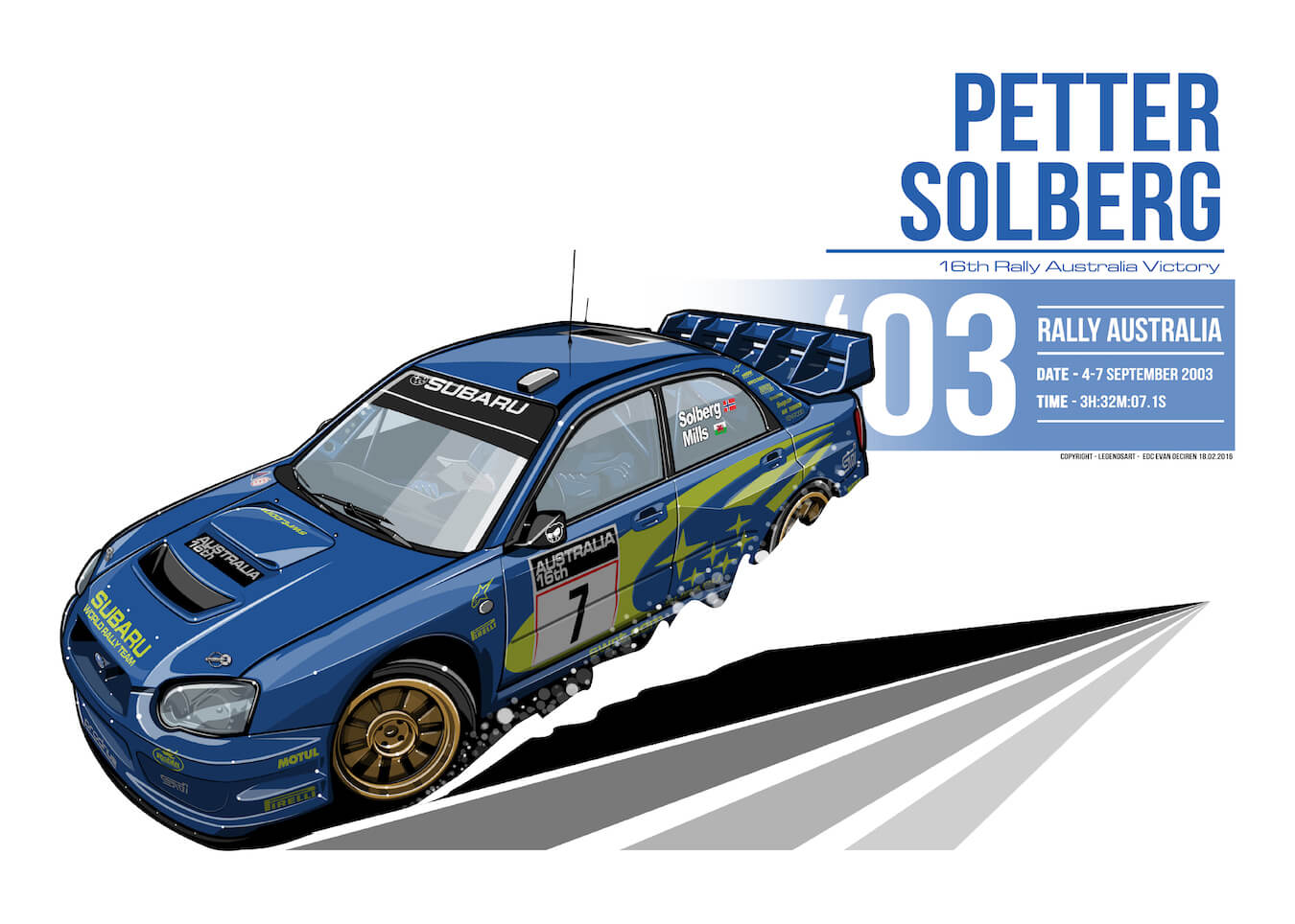 In 1995, Subaru World Rally Team signs a sponsorship deal with State Express 555 cigarettes brand. This gives them the distinctive blue and yellow racing livery, a trademark for Subaru WRC cars.